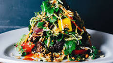 🥗 - TOSS: Ever-so-lightly noodles and steak into the salad.
